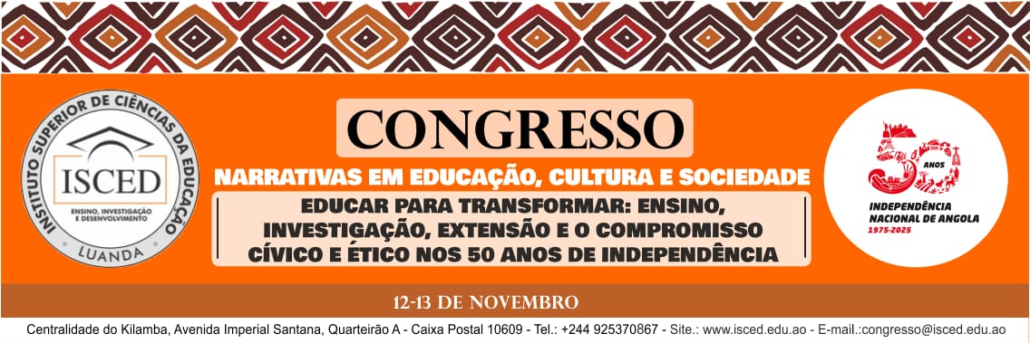 O Instituto Superior de Ciências da Educação de Luanda (ISCED-Luanda) anuncia a realização do Congresso “Narrativas em Educação, Cultura e Sociedade”, nos dias 12 e 13 de Novembro. O evento, integrado nas actividades paralelas da 4ª Edição da Bienal de Luanda, terá como lema “Educar para transformar: Ensino, Investigação, Extensão e o Compromisso cívico e ético nos 50 anos da Independência”. Esta iniciativa reunirá a comunidade académica e outros intervenientes em torno de diversas modalidades, como Conferências, Simpósios, Mesas Redondas, Seminários e Colóquios, com o objetivo de refletir sobre o papel da educação em África.