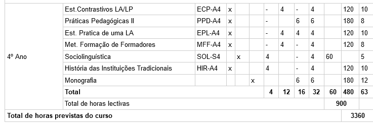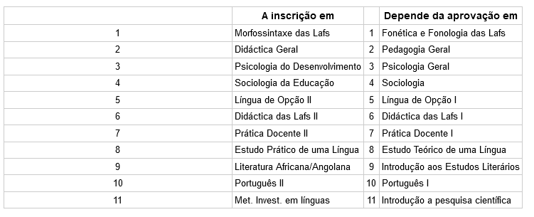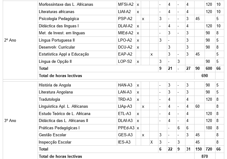 Plano de estudo do curso de Línguas e Literaturas Africanas