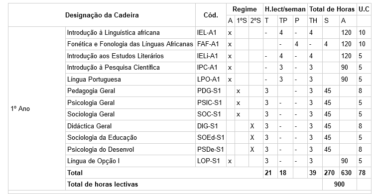 Licenciatura em Ensino de Línguas e Literaturas Africanas